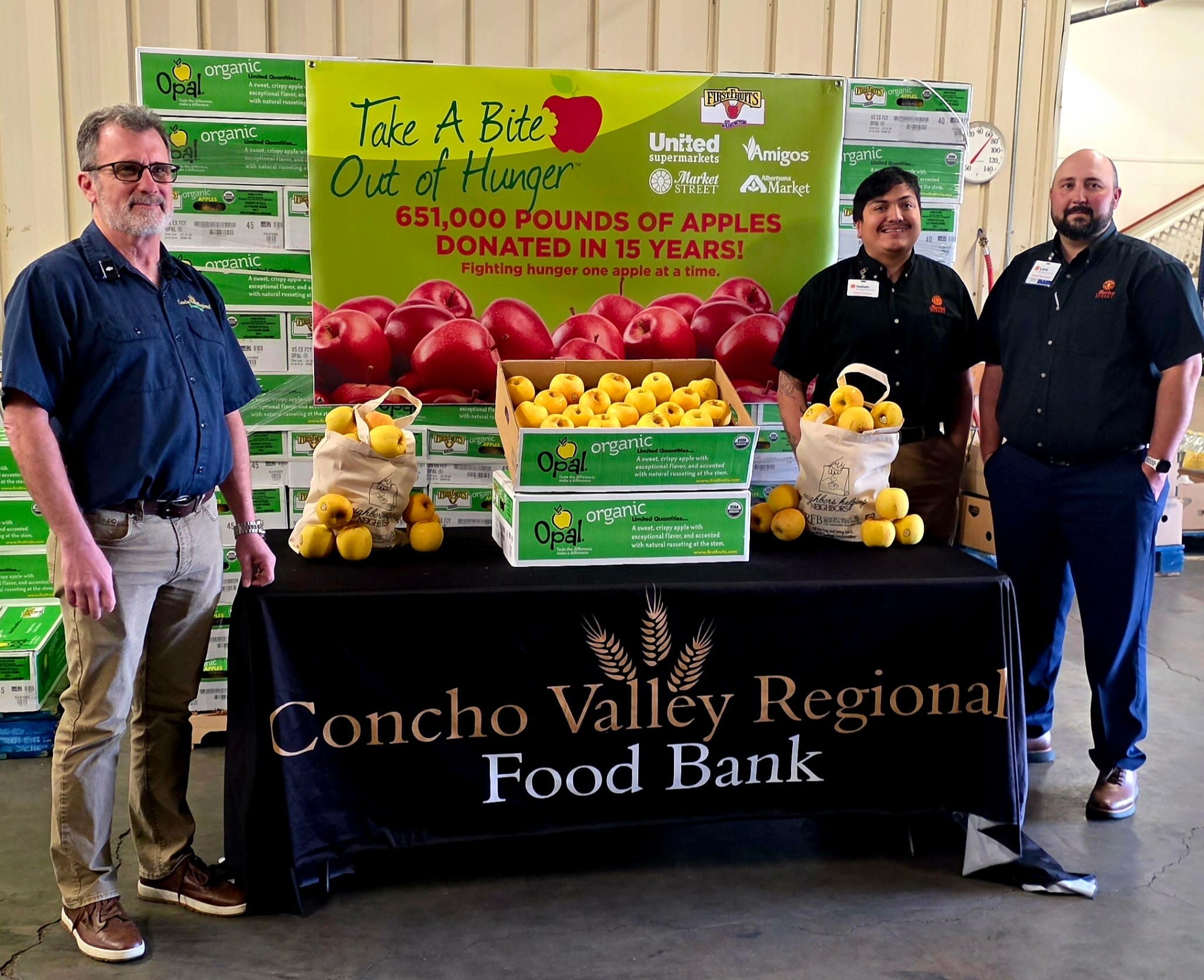 This year’s donation marks the 16th year of the Take a Bite Out of Hunger® program. Thanks to the partnership between The United Family and FirstFruits Farms, more than 650,000 pounds of apples have been donated, helping countless families across both states.