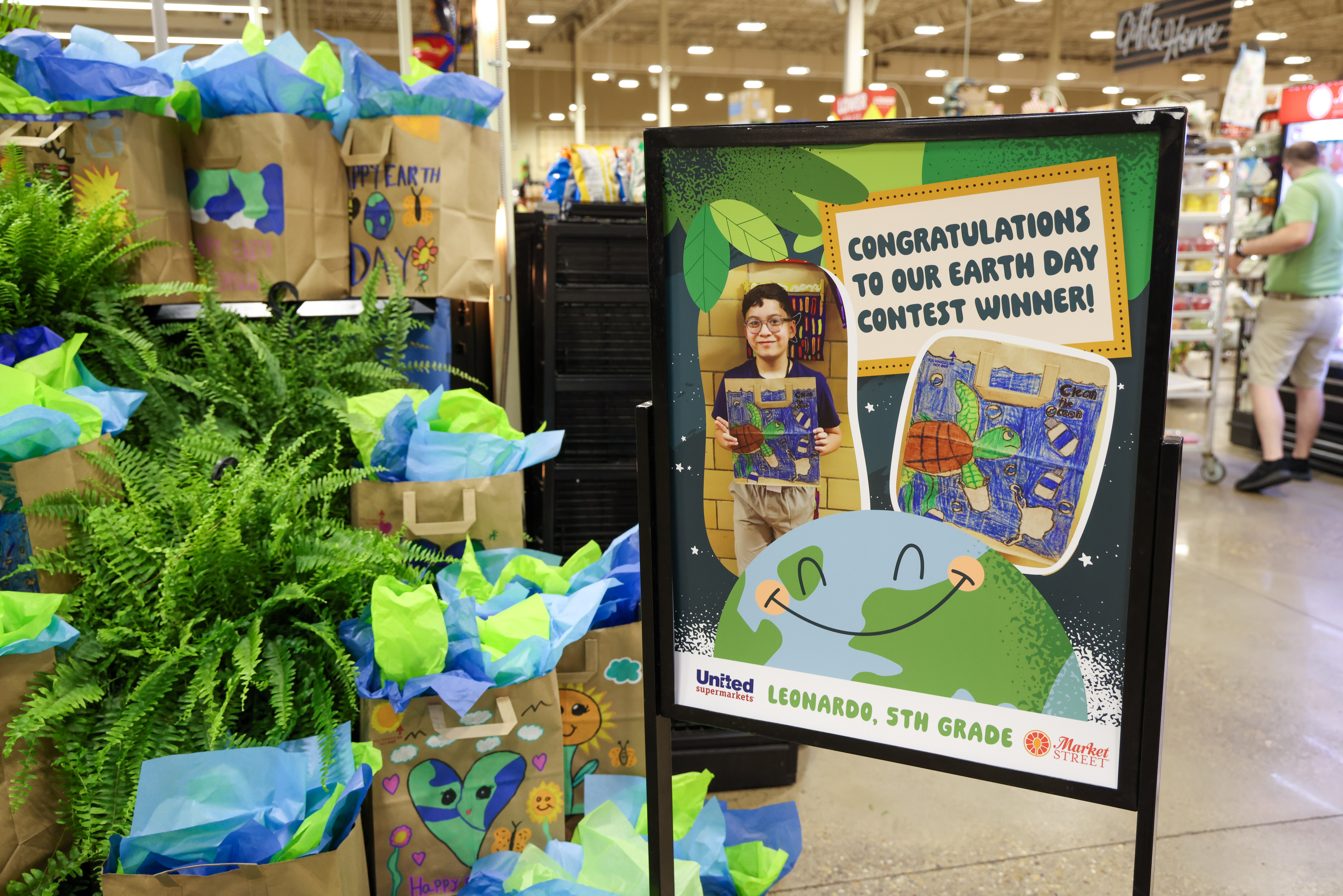 Fifth grader Leonardo Preciado’s artwork was selected as the winning piece for the contest. He was honored with a prize bag and gift card at a ceremony at Market Street and his artwork will be featured at select United Family locations in honor of Earth Day. All of the decorated bags will be available for guests’ use at select locations.