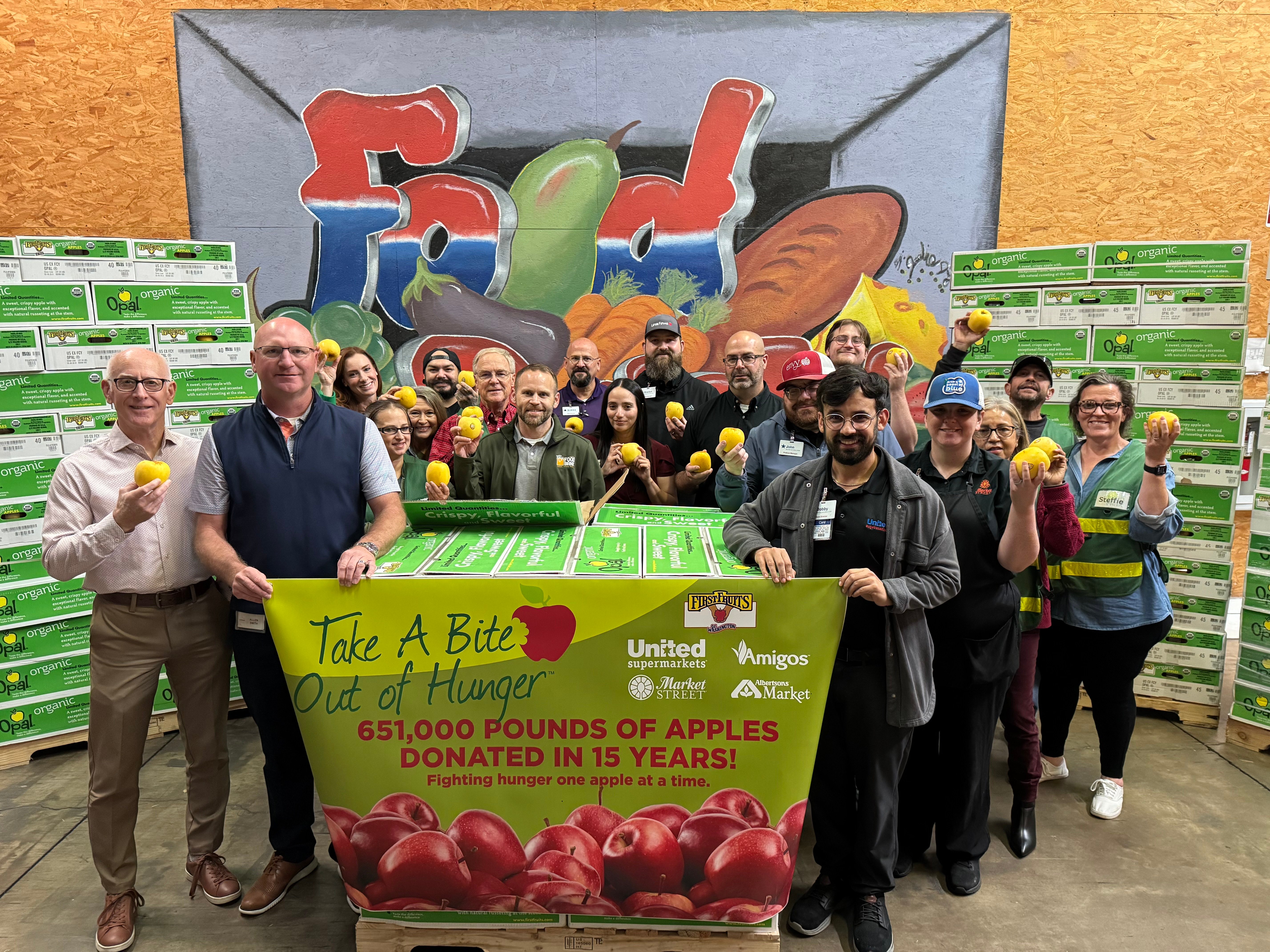 This year’s donation marks the 16th year of the Take a Bite Out of Hunger® program. Thanks to the partnership between The United Family and FirstFruits Farms, more than 650,000 pounds of apples have been donated, helping countless families across both states.
